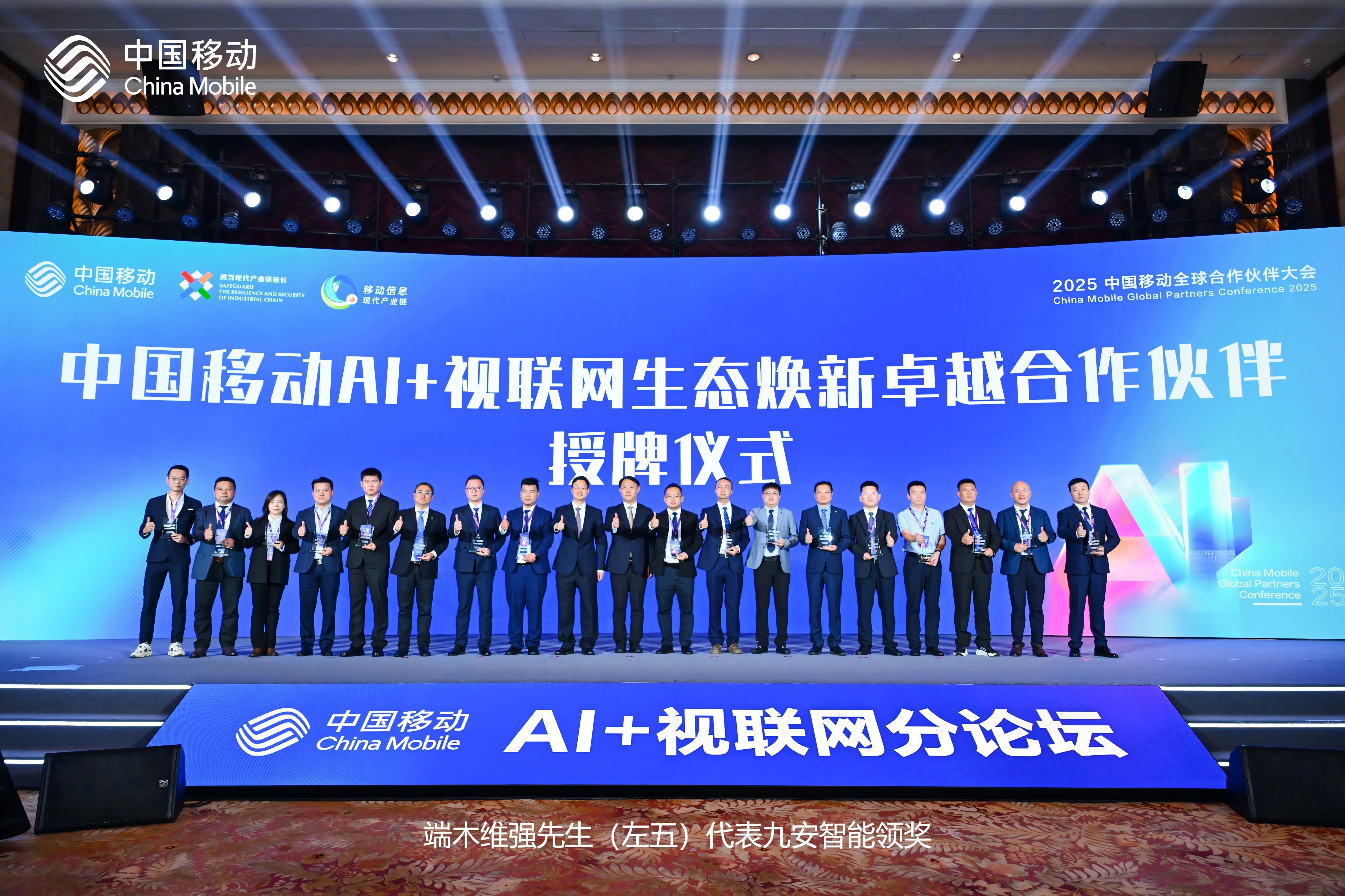 2025年10月11日,广东九安智能科技有限公司(以下简称“九安智能”)在中国移动全球合作伙伴大会“AI+视联网分论坛”上,凭借在视联网领域的技术实力与生态贡献,荣获“卓越合作伙伴”奖项。